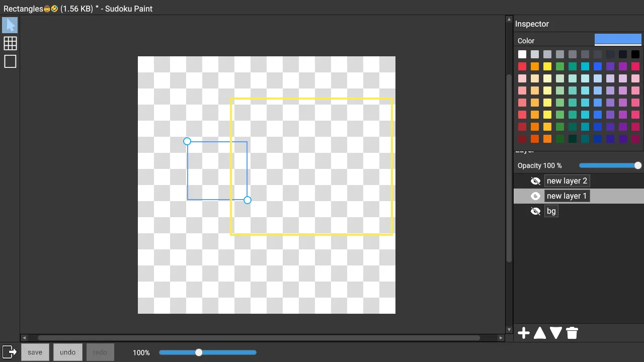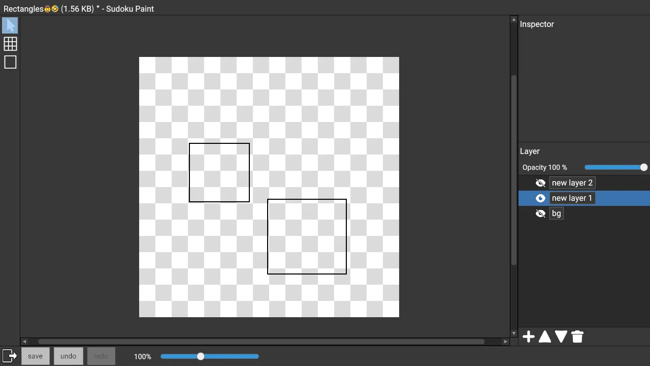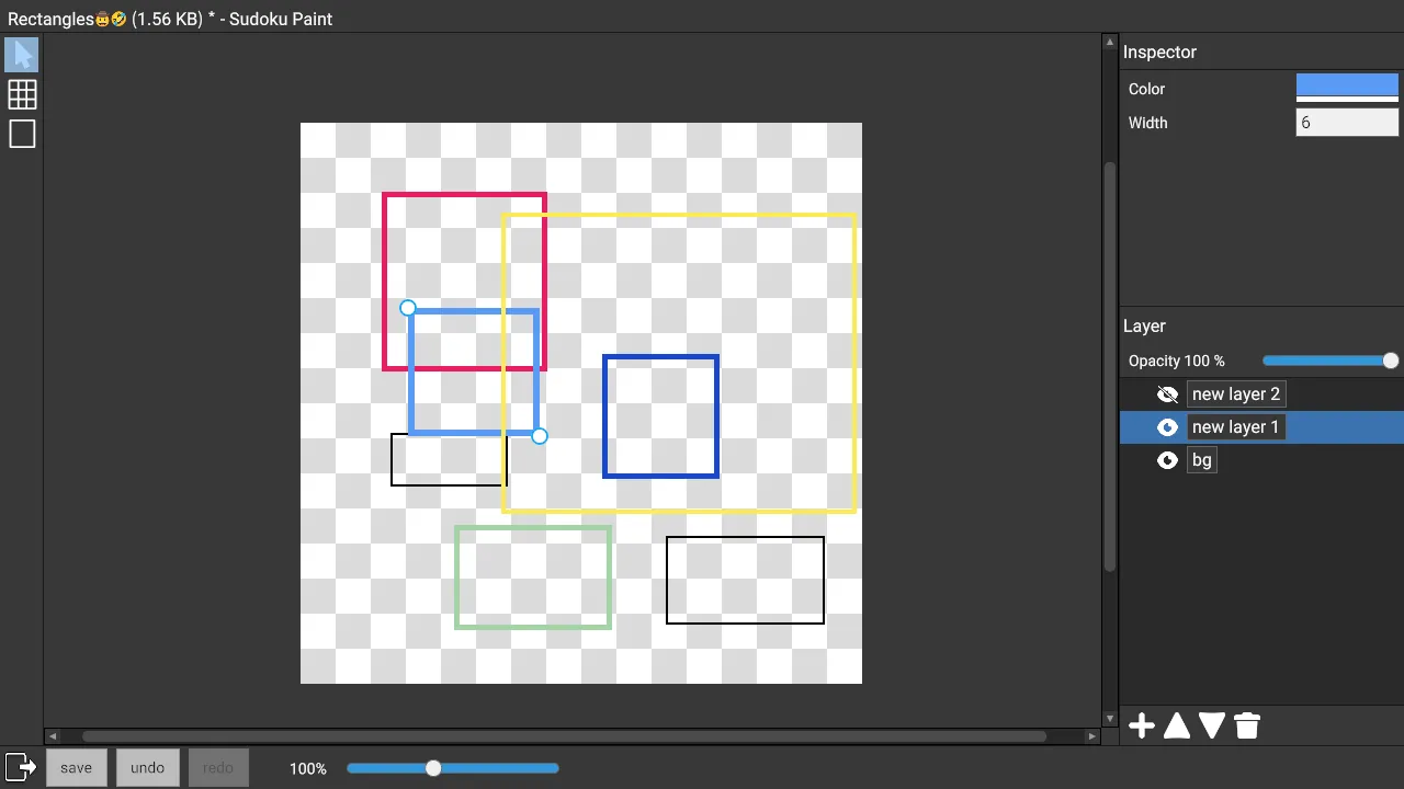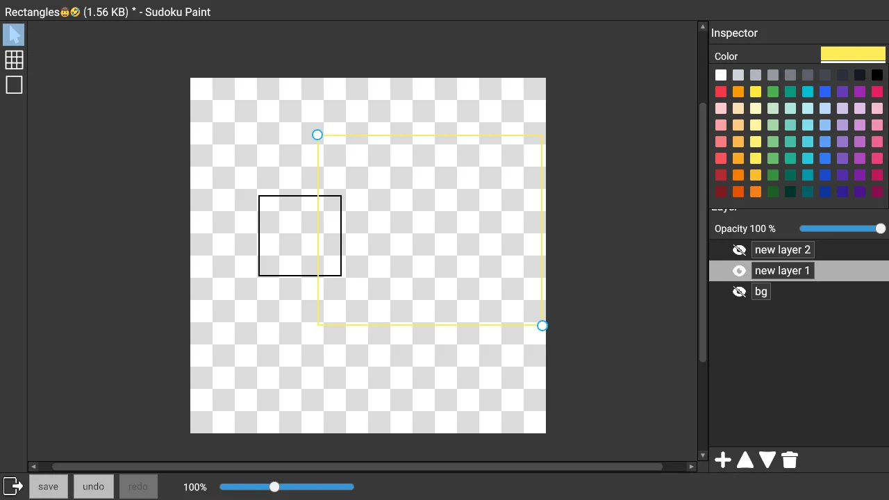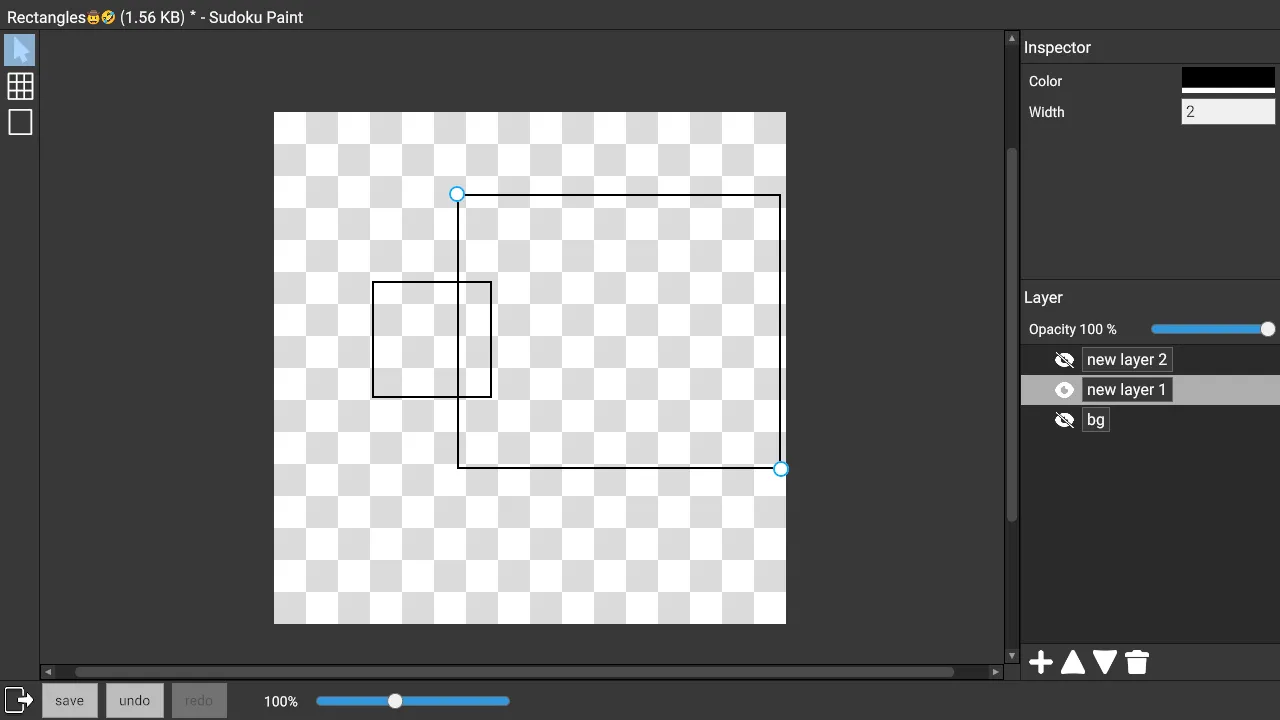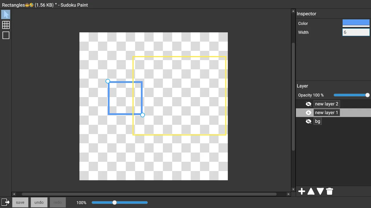 Currently there is only the Rectangle tool. Later on, the Sudoku Board tool will be added for drawing the contents of Sudoku puzzles. The Line tool and Text tool will also be added.