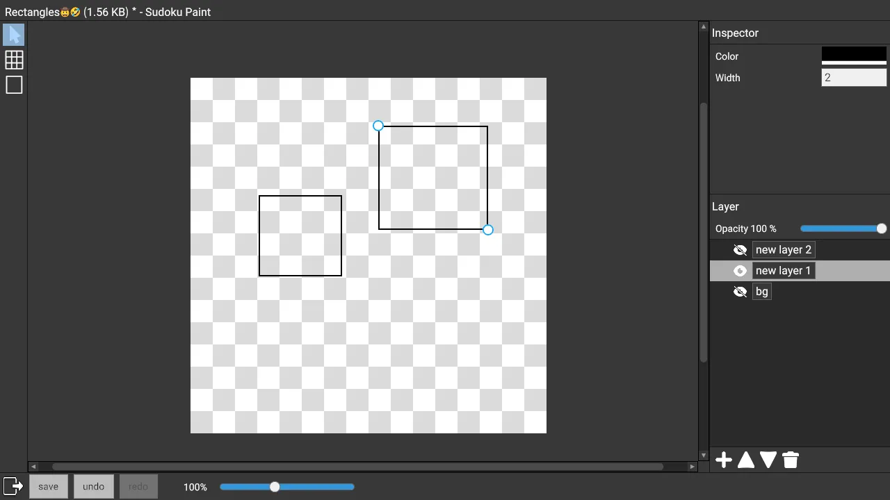 Currently there is only the Rectangle tool. Later on, the Sudoku Board tool will be added for drawing the contents of Sudoku puzzles. The Line tool and Text tool will also be added.